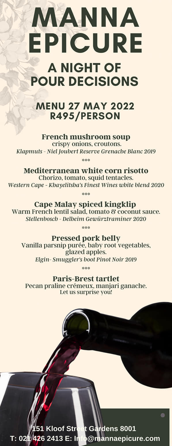 Join Manna Epicure on the 27th of May for a celebration of food and wine.