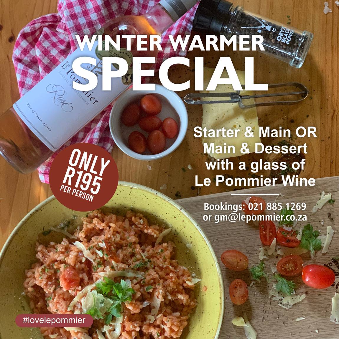 There are still many chilly days around, and what better way to stay warm than with delicious food & wine at Le Pommier. Even if it isn’t basking in the glorious Stellenbosch sunshine, Le Pommier is warm and welcoming with luxury accommodations, fabulous food and award-winning wines.