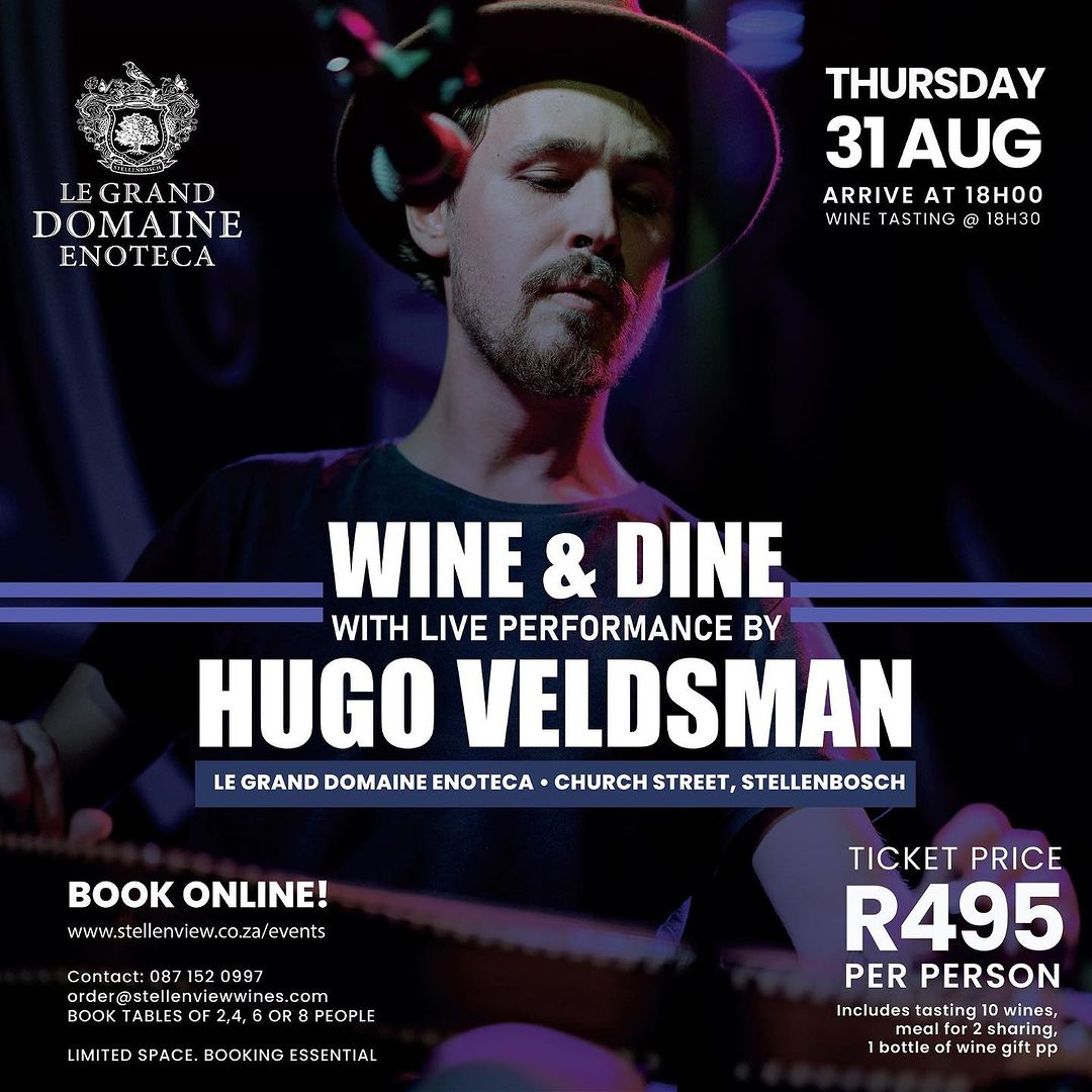 Guests will be treated to a curated selection of the estate’s finest wines, presented by none other than the master winemaker themselves. As glasses are raised and conversations flow, the acclaimed Hugo Veldsman will serenade attendees with his soulful melodies, elevating the experience to one of pure magic.