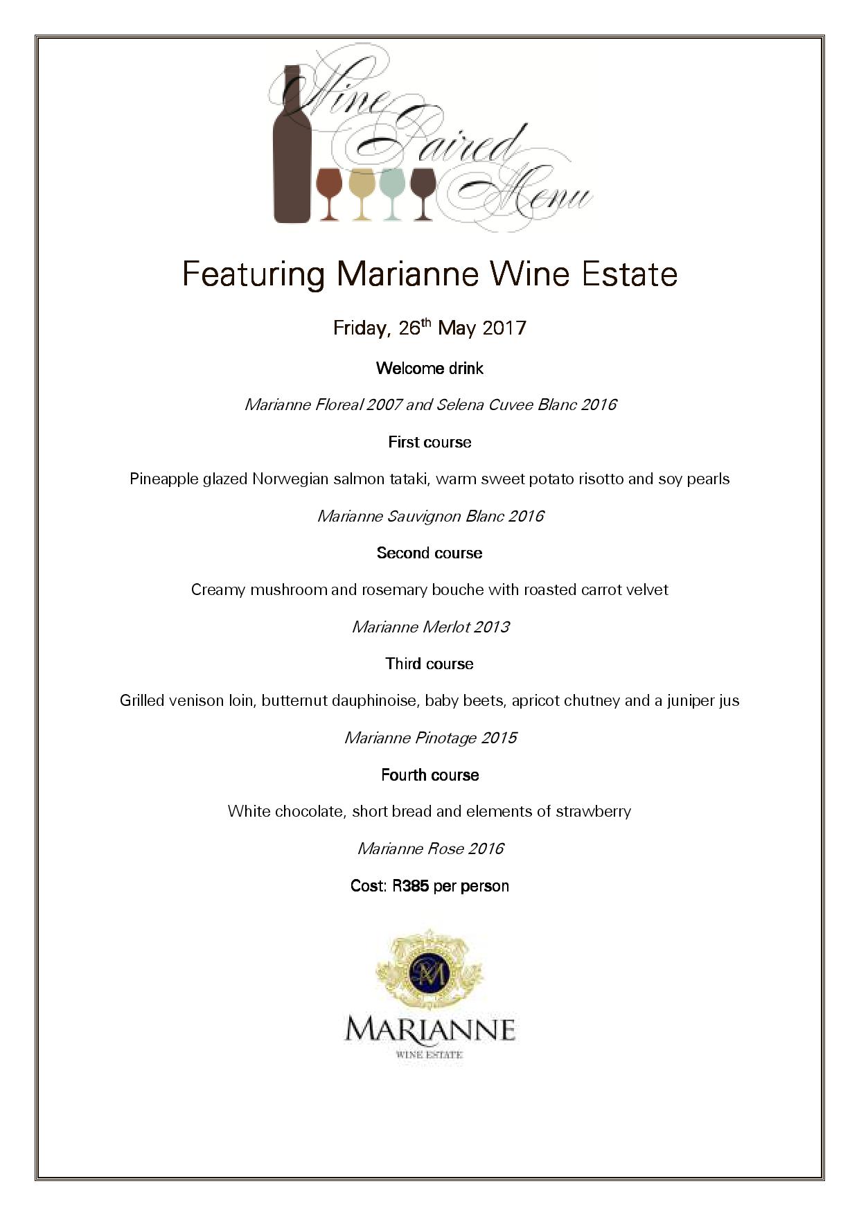 Marianne Wine Estate News & Events Wine & Dine Evenings Cape Town Restaurants Wine & Dine Evenings Southern Suburbs Cape Town Restaurants