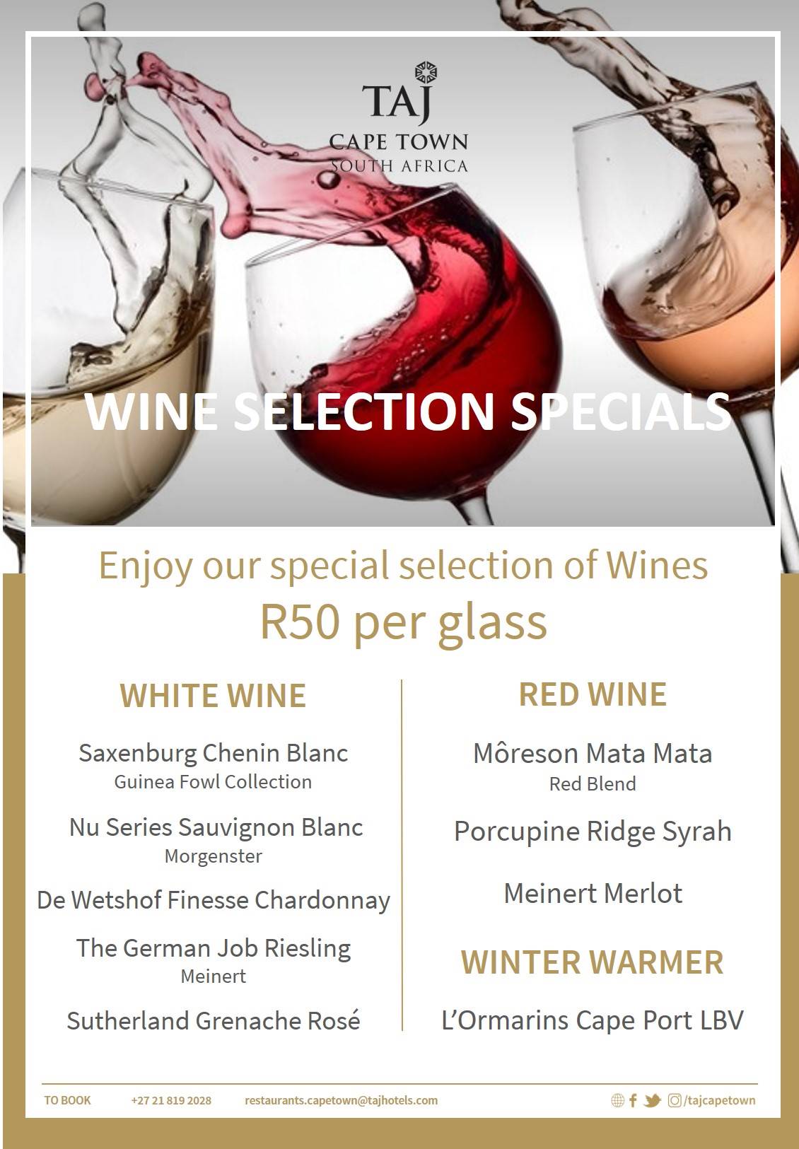 Enjoy a special selection of wines by the glass for only R50 when joining Bombay Brasserie this winter:
