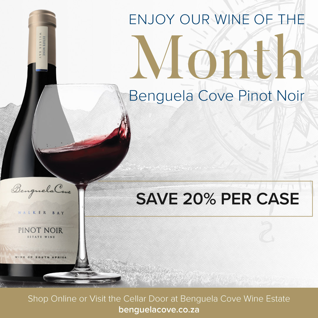 Indulge in the Wine of the Month, Benguela Cove Pinot Noir.