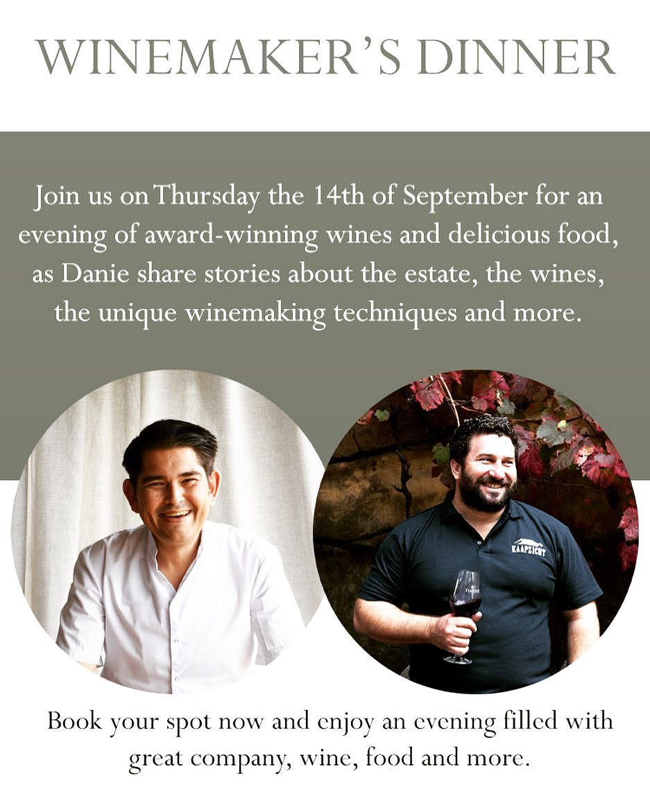 Get ready to tantalize your taste buds and elevate your wine experience on Thursday, September 14th, as Jordan Restaurant hosts a Winemaker’s Dinner in collaboration with Kaapzicht Wines.