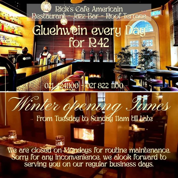 If winter has you bundled up and dreaming of something warm and wonderful, Rick’s Café Américain has just the answer: their famous Alpine Glühwein, back by popular demand and steaming away at just R42 a glass.