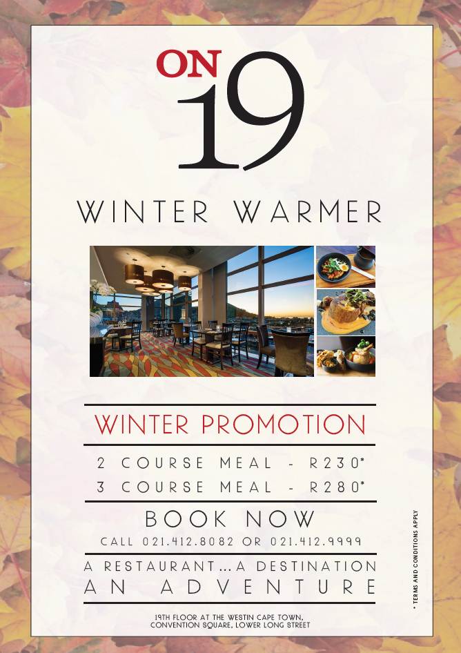The restaurant is located on Cape Towns renowned Long Street, offering a one-of-a-kind view of the city’s wondrous skyline and Table Mountain. During the winter months, they are promoting a new special that should get everyone excited. 2 courses are available for R230, while a three course meal will only cost you R280. If you take into account the view, the excellent food and fantastic service, this is on winter special you shouldn’t miss out on!