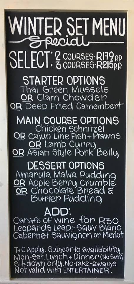 From Monday – Saturday,s you can enjoy a 2 course set menu or 3 course set menu for only R179 per person and R215 per person respectively. Your favourite seafood dishes as well as a few other dishes are made available on this winter set menu special near the Hout Bay harbour.