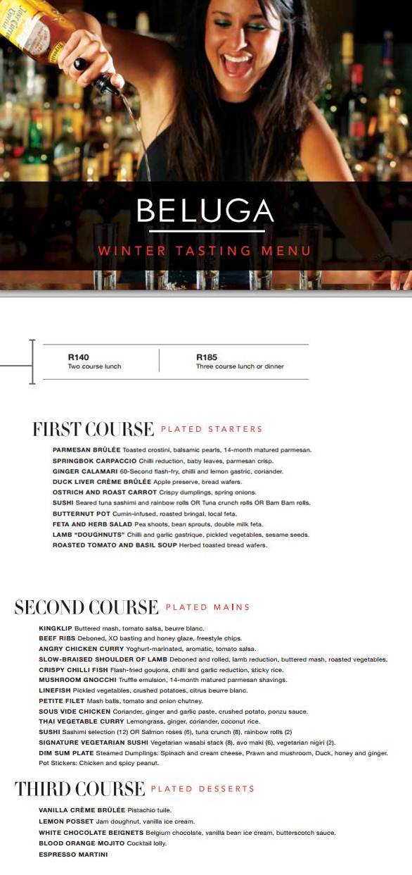 During winter, the restaurant has launched a fantastic new tasting menu, which is available for lunch & dinner. For lunch, you can order two courses for R140 or three courses for R185. You can also order the three course menu when you visit Beluga for dinner. Booking is essential as the restaurant fills-up pretty quickly.