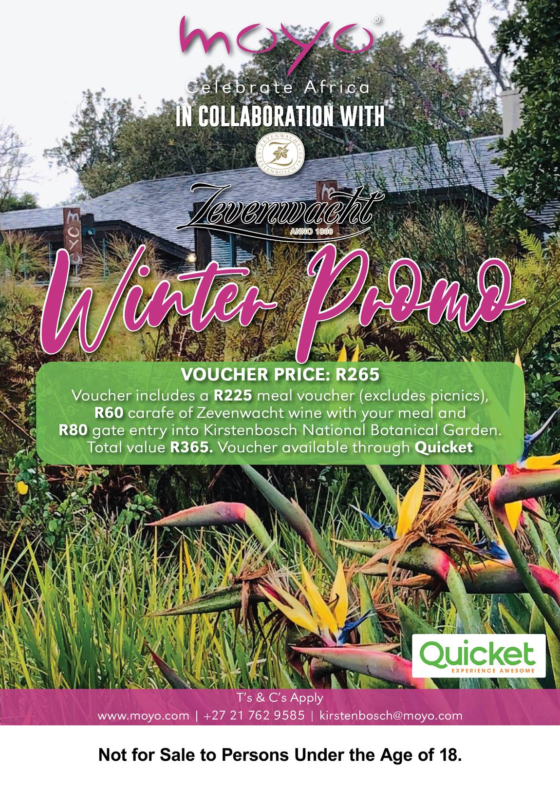 Enjoy the most incredible experience with moyo Kirstenbosch, Kirstenbosch Botanical Gardens & Zevenwacht Wines.