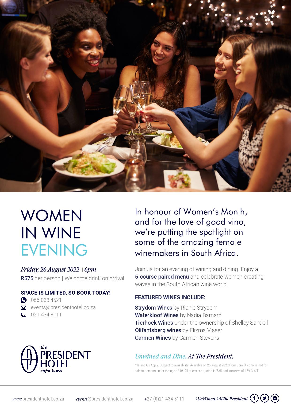 Women in Wine Showcase & Dinner Evening at The President Hotel
